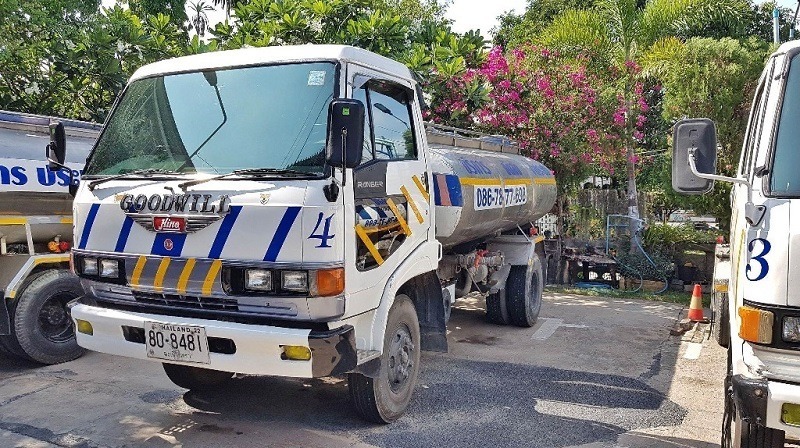 กู๊ดวิลล์ บริการน้ำประปาจัดส่งน้ำ ส่งน้ำประปาสมุทรปราการ ส่งน้ำใช้เพื่อในโรงงานอุตสาหกรรม จัดส่งด้วยรถบรรทุกน้ำ 6 ล้อ แท้งค์สแตนเลสไร้สนิม มีขนาดเดียว 6,500 ลิตร